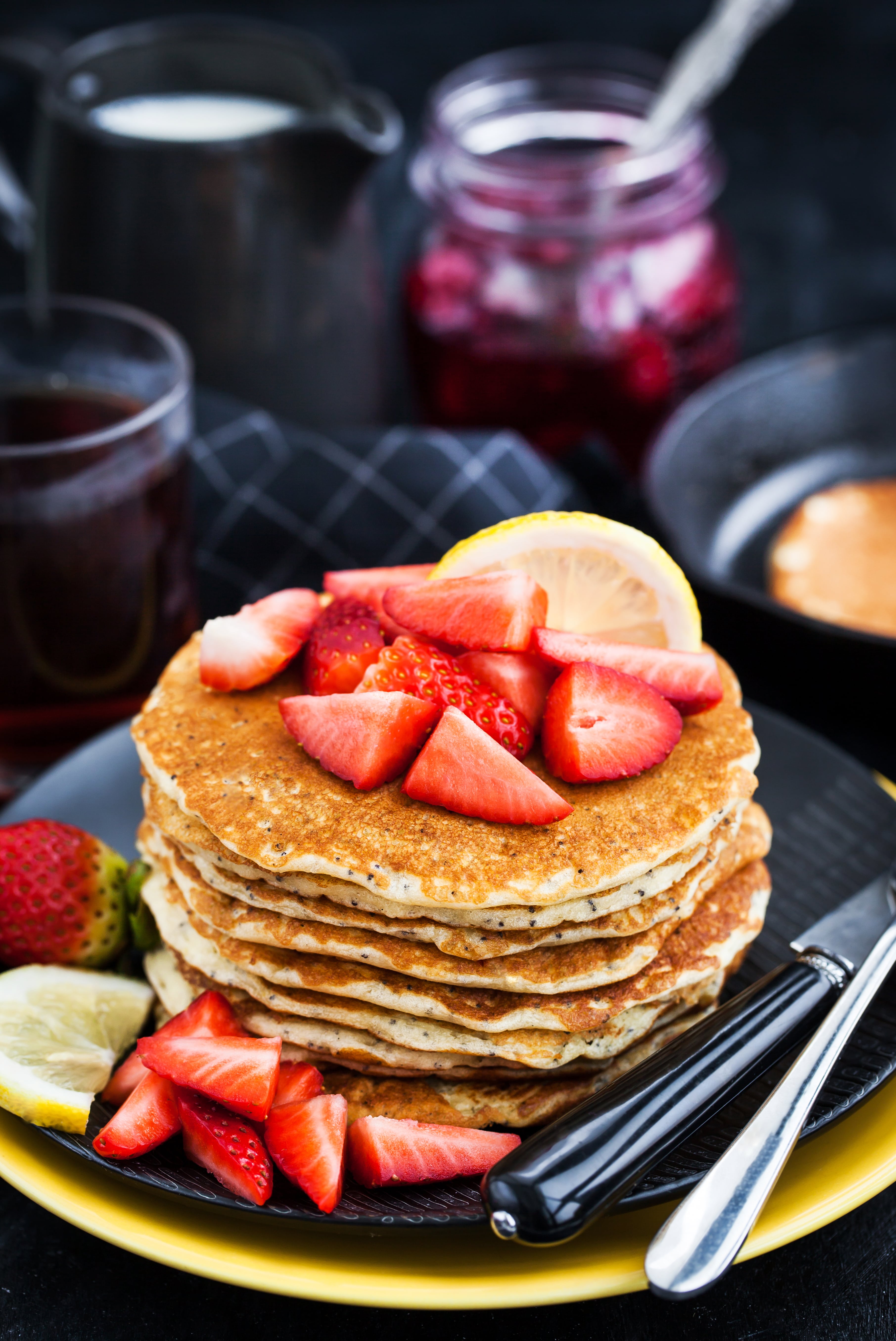 - Die Pfanne mit Butter beschichten und den Teig goldbraun von beiden Seiten backen, im Anschluss mit frischen Beeren servieren.